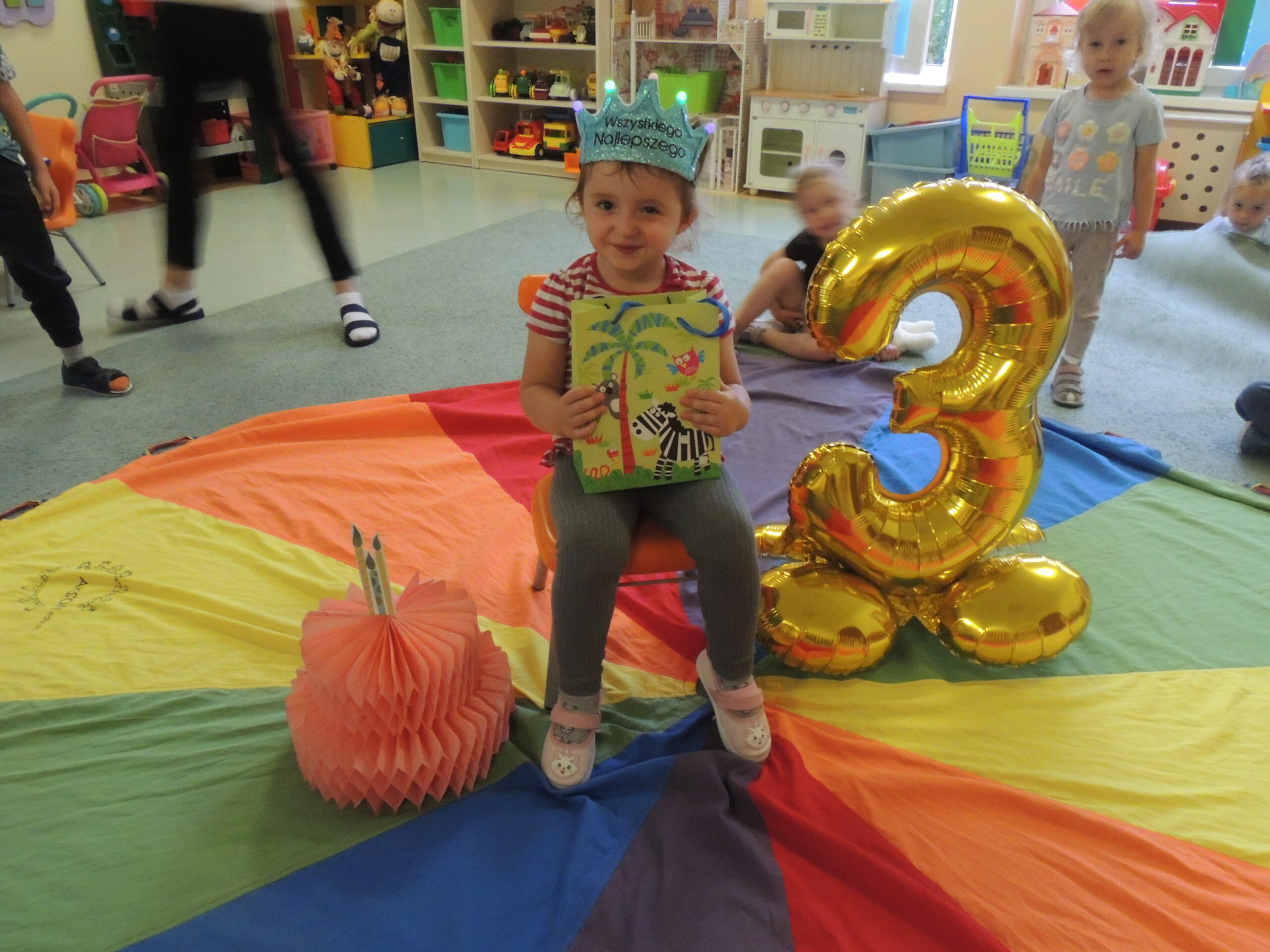 Tego dnia dzieci odśpiewały wspólnie sto lat, złożyły życzenia, wręczyły dyplom oraz drobny upominek w postaci balonika. Świetnie się bawiły i integrowały. Mariczko bądź szczęśliwa i uśmiechnięta 🙂