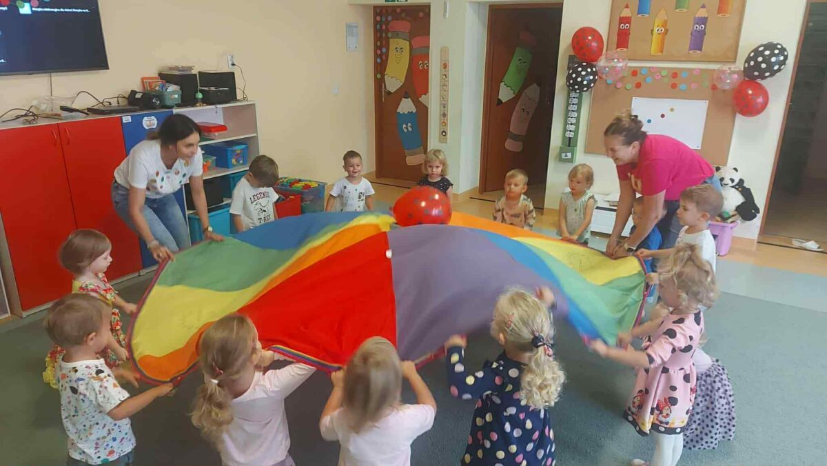 Tego dnia dzieci przyszły do przedszkola w radosnych, kolorowych strojach pełnych kropek, a sala zamieniła się w prawdziwą „kropkową krainę”.