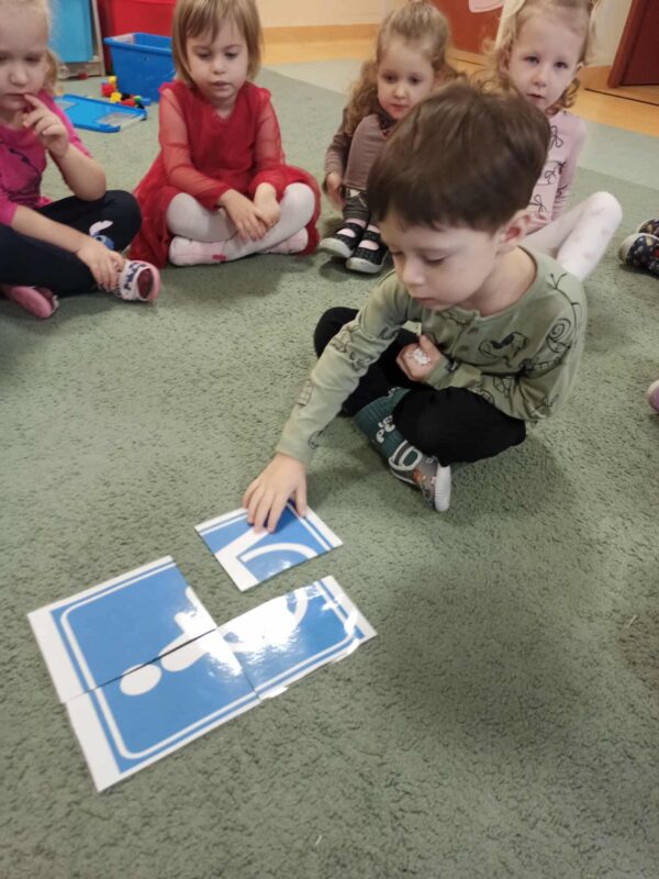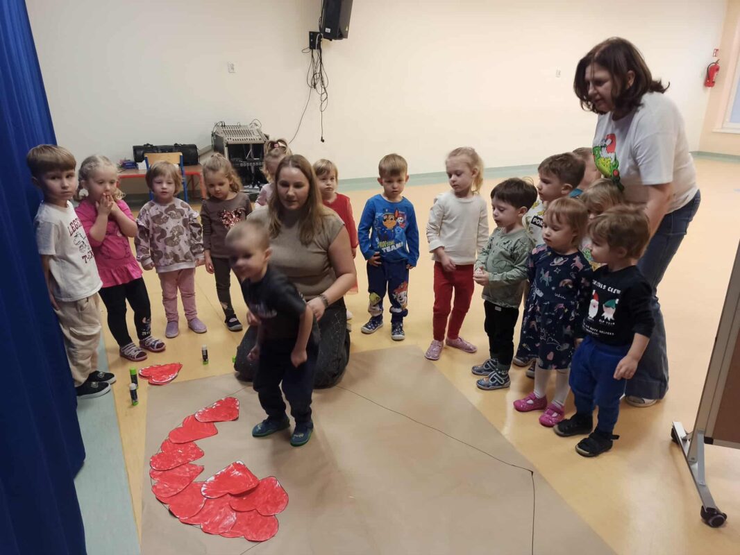 3 grudnia obchodziliśmy Międzynarodowy Dzień Osób z Niepełnosprawnościami. Dzieci obejrzały krótki film oraz wzięły udział w zabawach integracyjnych. Na koniec pomalowały serduszka czerwoną farbą i wspólnie z całą społecznością przedszkola stworzyły z nich wspólny plakat. Wszystko miało na celu uwrażliwienie dzieci na potrzeby i pomoc osobom z różnymi niepełnosprawnościami.