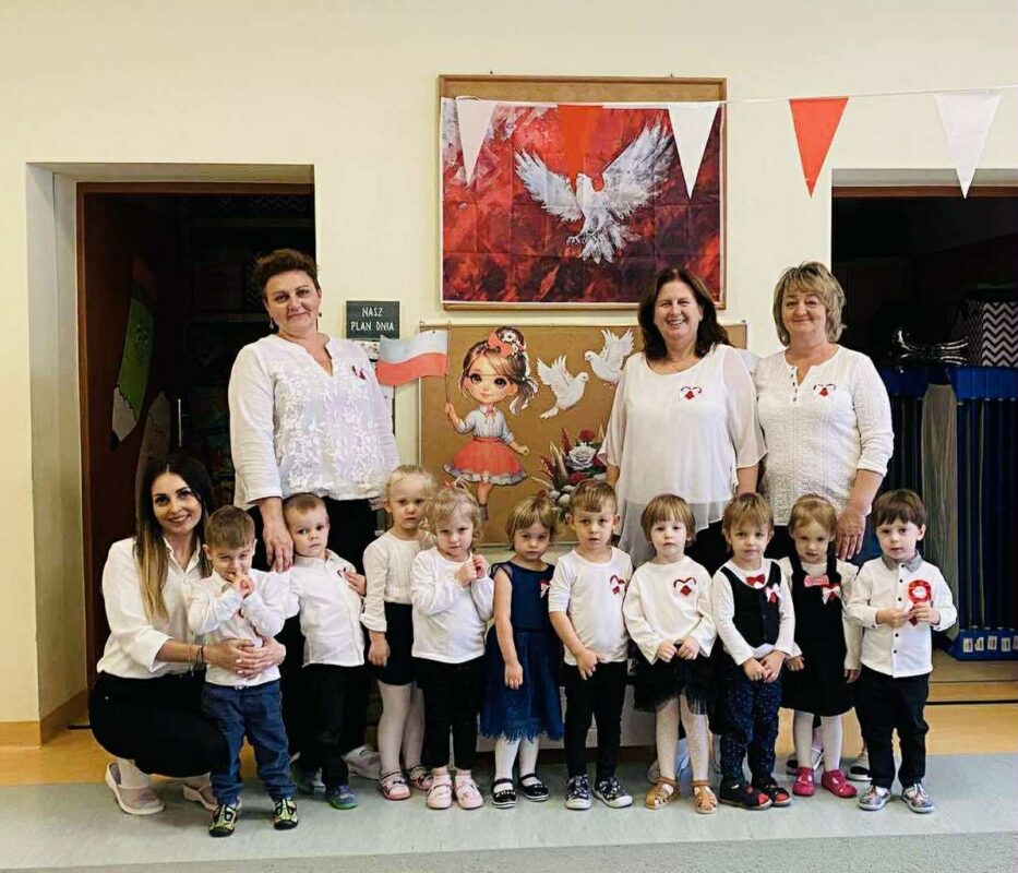 O godzinie 11:11 dzieci z całego przedszkola, w tym również nasze najmłodsze – trzylatki – z dumą odśpiewały „Mazurka Dąbrowskiego”, włączając się w ogólnopolską akcję „Szkoła do Hymnu”.