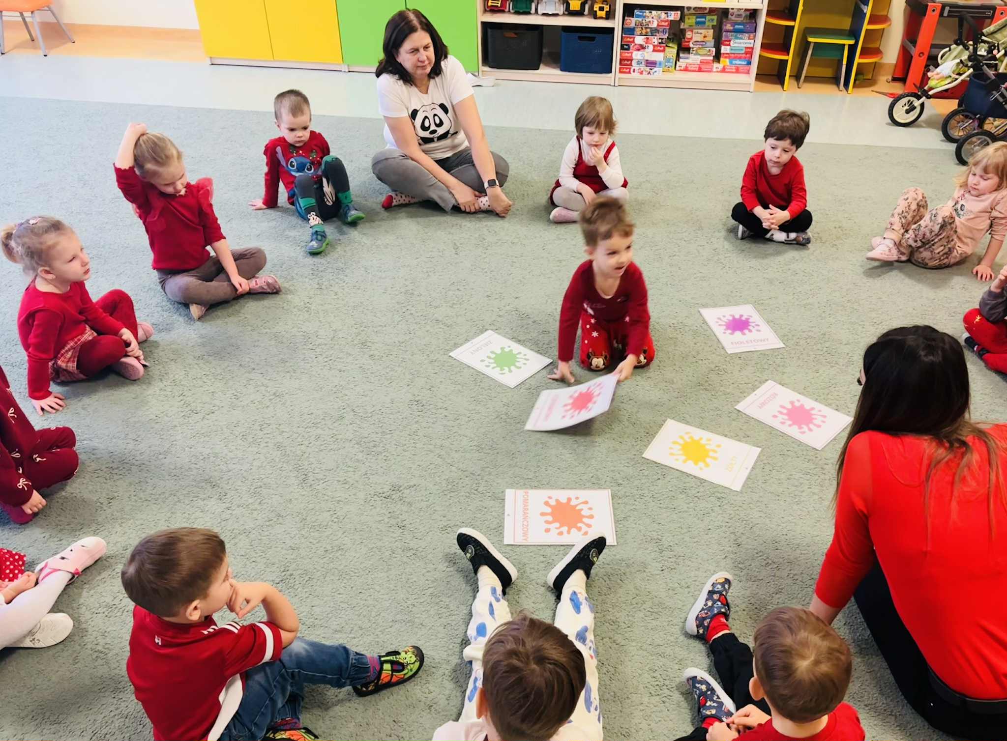 Nasze dzieci poznały nowy kolor – czerwony. Podczas zajęć brały udział w różnorodnych zabawach: wyszukiwały czerwone przedmioty w sali, uczestniczyły w zabawach ruchowych oraz plastycznych. Dzięki wspólnej aktywności dzieci utrwalały nazwę koloru, rozwijały spostrzegawczość i świetnie się bawiły.
