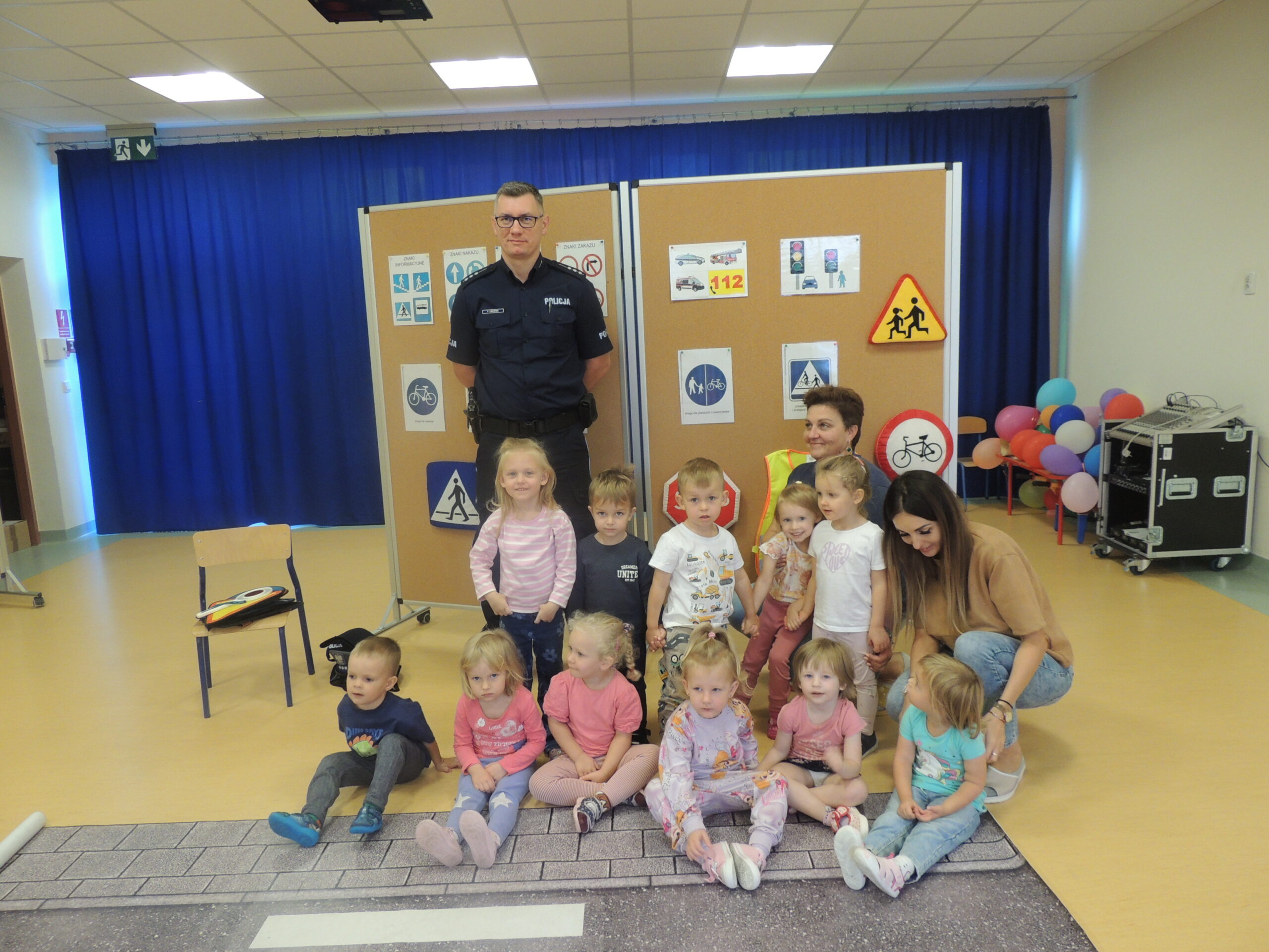 Podczas spotkania dzieci utrwaliły sobie najważniejsze zasady bezpiecznego poruszania się po drodze, dowiedziały się, jak prawidłowo przechodzić przez pasy, oraz co zrobić w sytuacji zagrożenia. Pan policjant przypomniał również, jak ważna jest znajomość numerów alarmowych.