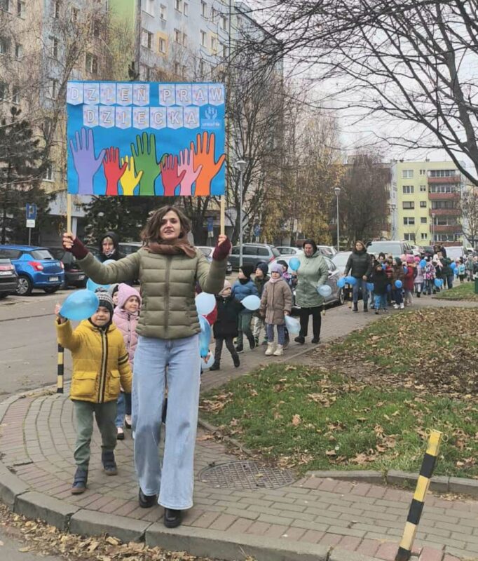 20 listopada obchodziliśmy Międzynarodowy Dzień Praw Dziecka. Z tej okazji dzieci wzięły udział w marszu z niebieskimi balonami, które symbolizują solidarność z dziećmi na całym świecie. Również odbyła się krótka pogadanka o prawach dziecka, podczas której najmłodsi dowiedzieli się, że każde dziecko ma prawo do miłości, szacunku, opieki, nauki, bezpiecznego dorastania i wyboru przyjaciół.