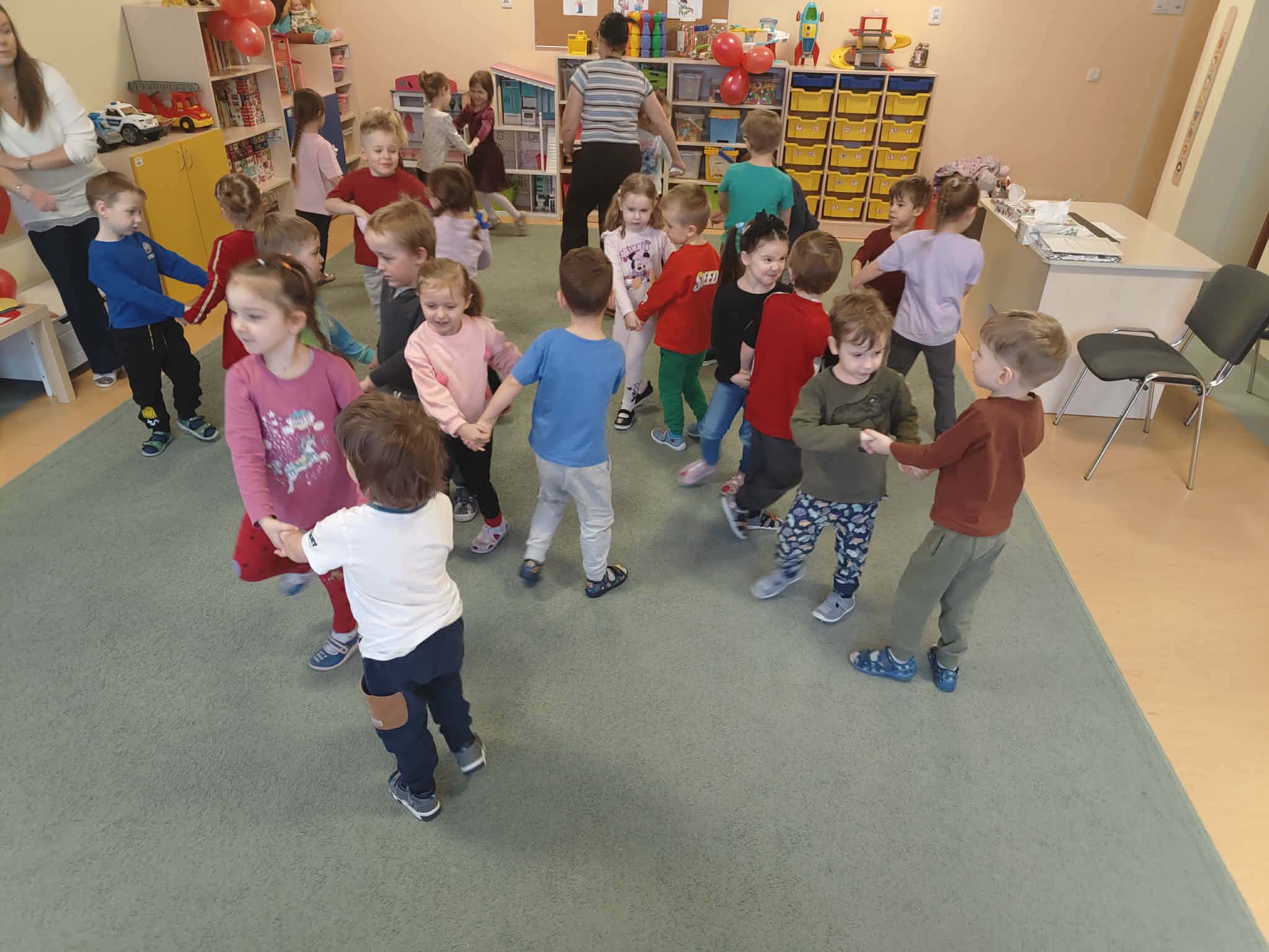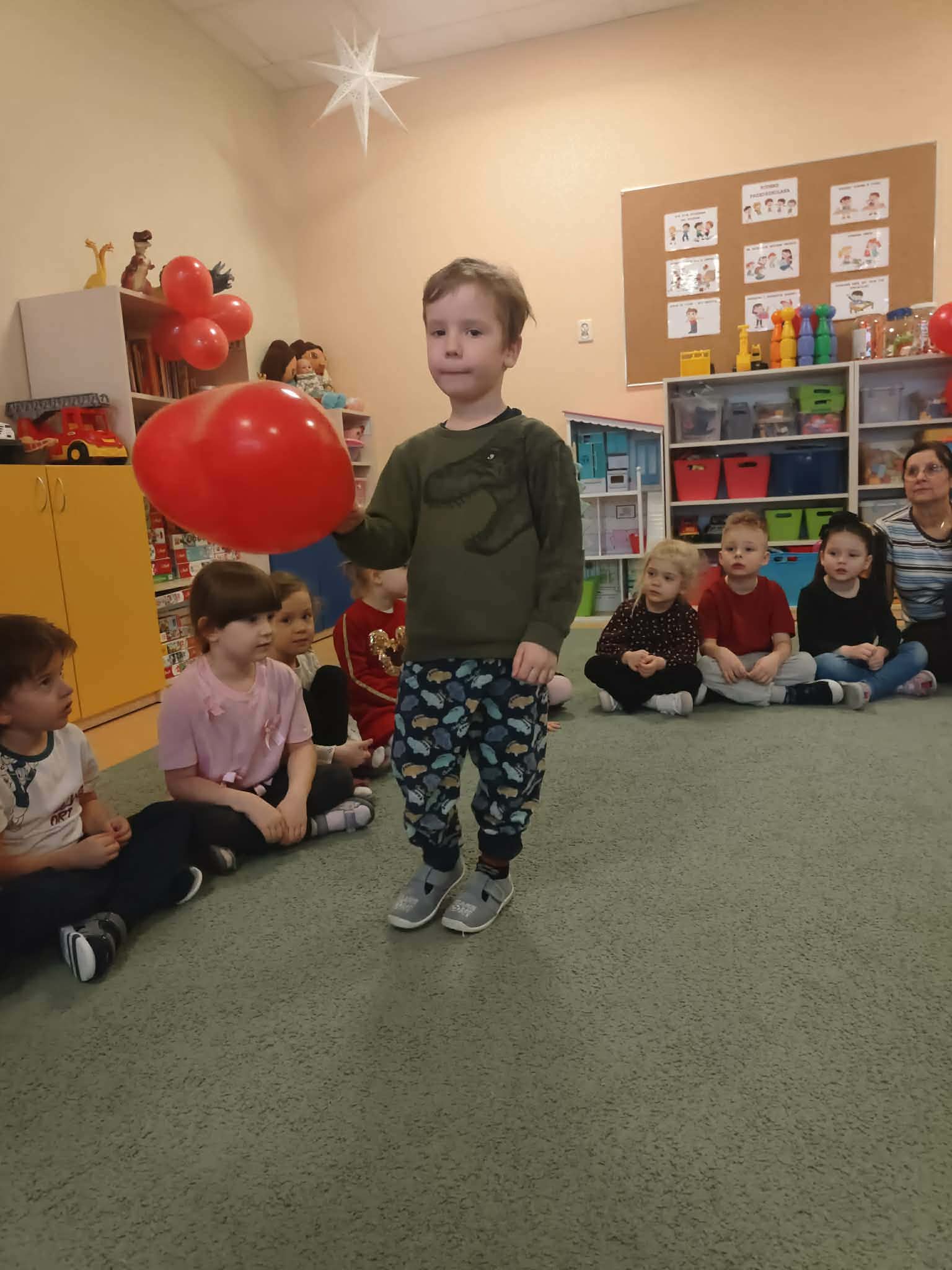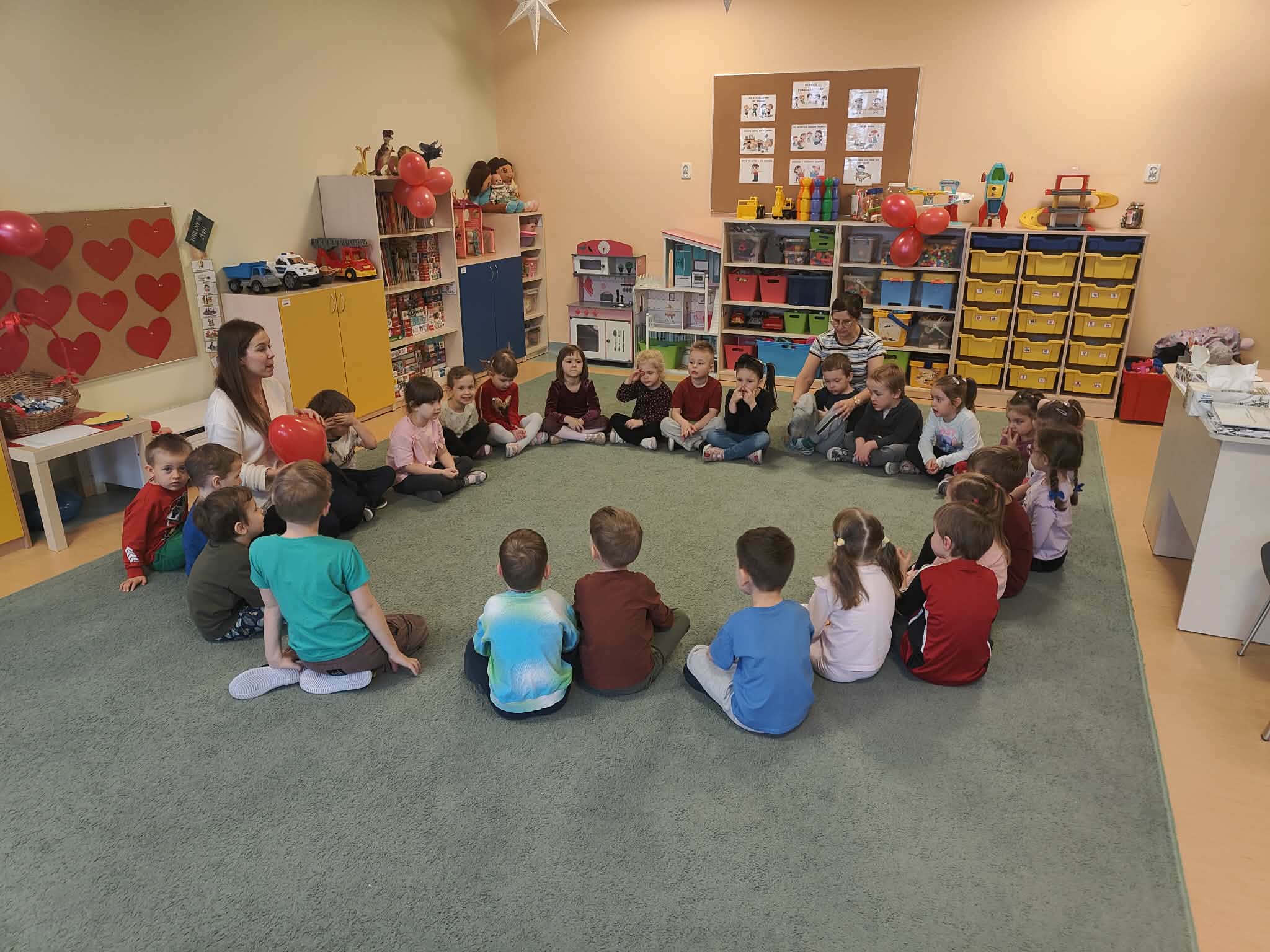 13 lutego dzieci z grup Biedronki i Żabki świętowały Walentynki. Na początku obejrzały film edukacyjny pt. „Walentynki – Kazio pokaz kartek walentynkowych”, podczas którego poznały historię tego wyjątkowego święta oraz dowiedziały się, jak brzmią słowa „kocham Cię” w różnych językach świata. Następnie przyszedł czas na wspólne zabawy i tańce. Nie zabrakło radosnej atmosfery, uśmiechów oraz dobrej zabawy. To był dzień pełen serdeczności, przyjaźni i pozytywnych emocji. 💖