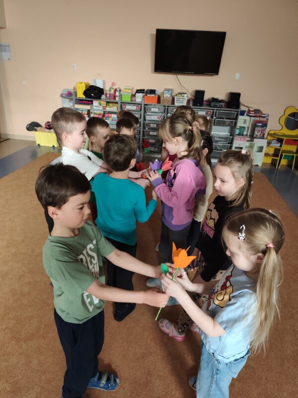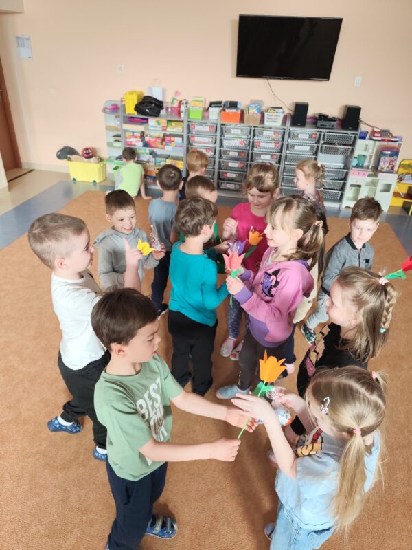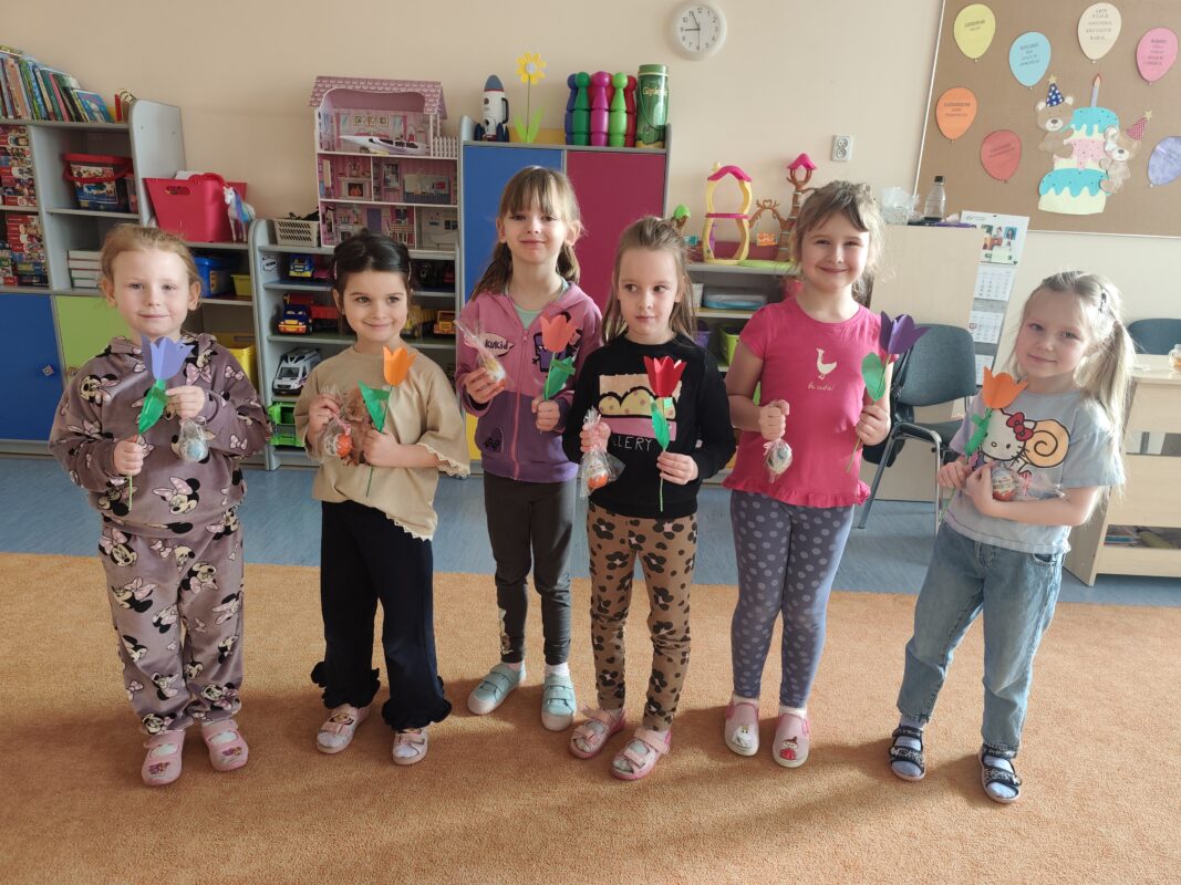 Międzynarodowy Dzień Kobiet obchodzony 8 marca to data, którą znać powinien każdy chłopiec i ten duży i ten mały. W naszym przedszkolu również świętowaliśmy ten dzień, gdyż chcieliśmy okazać sympatię naszym koleżankom i pokazać im, że są wyjątkowe. Najpierw wybraliśmy się wspólnie na seans „Orzełek Iggy” do kina Helios, a po powrocie chłopcy złożyli dziewczynkom oraz paniom serdeczne życzenia z okazji ich święta. Dziewczynki otrzymały drobne upominki oraz własnoręcznie wykonane tulipany, które sprawiły im dużo radości.