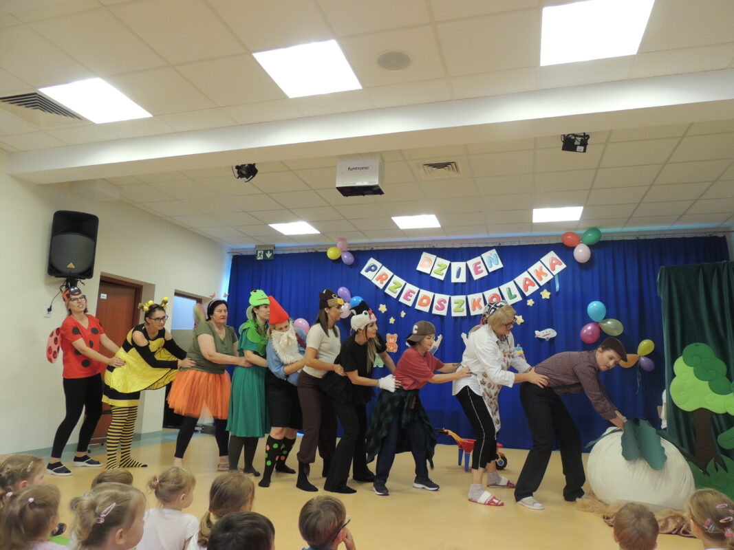 Nauczycielki przygotowały wyjątkowe przedstawienie na podstawie wiersza pt: „Rzepka” Juliana Tuwima. Wystąpiły w nim postacie, które związane były z nazwami sal, które tego dnia oficjalne nadała im Pani Dyrektor. Nasza sala zyskała nazwę Motylki.