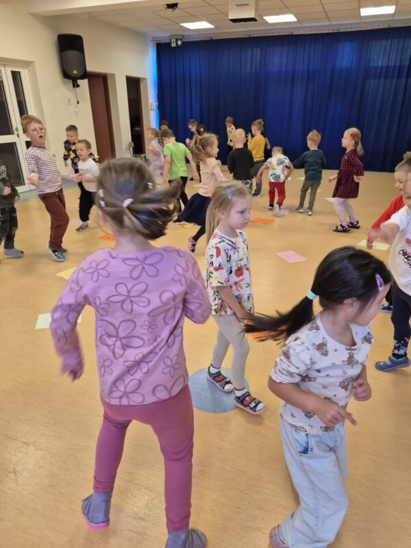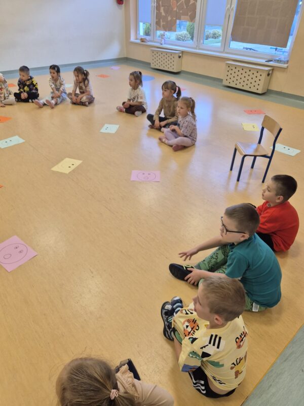 Celem spotkania było nie tylko wspólne spędzenie czasu, ale także utrwalenie wiedzy na temat emocji oraz budowanie więzi między dziećmi z obu grup. Nie zabrakło pogodnych nastrojów, uśmiechów i mnóstwa pozytywnej energii, dzięki czemu ten dzień na długo pozostanie w naszej pamięci.