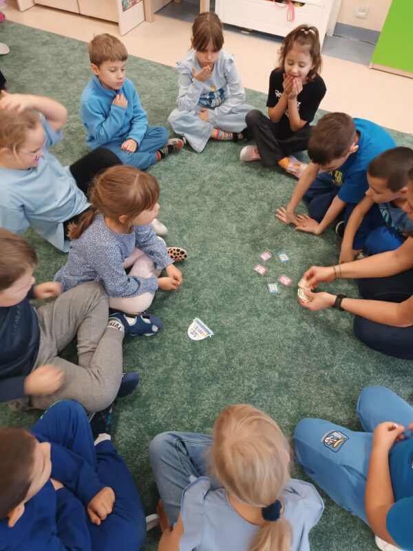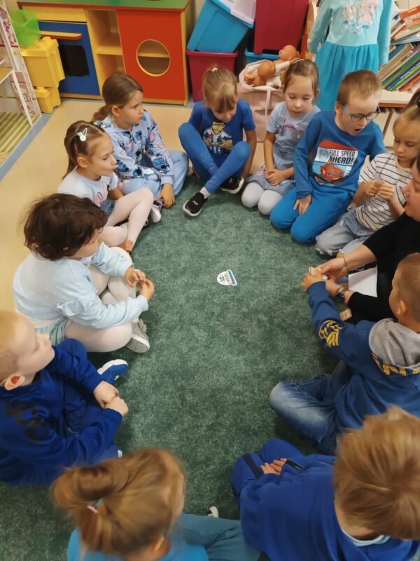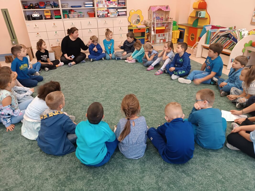 Tego dnia odwiedziły również nas Panie z OIK. Odbyły się zajęcia pod hasłem „PRZYJACIELE SIĘ NIE BIJĄ”. Dzieci dowiedziały się ,że musimy wzajemnie się szanować, dbać o siebie oraz pomagać sobie nawzajem. Podczas zajęć, dzieci w małych grupkach omawiały kodeks właściwego zachowania.