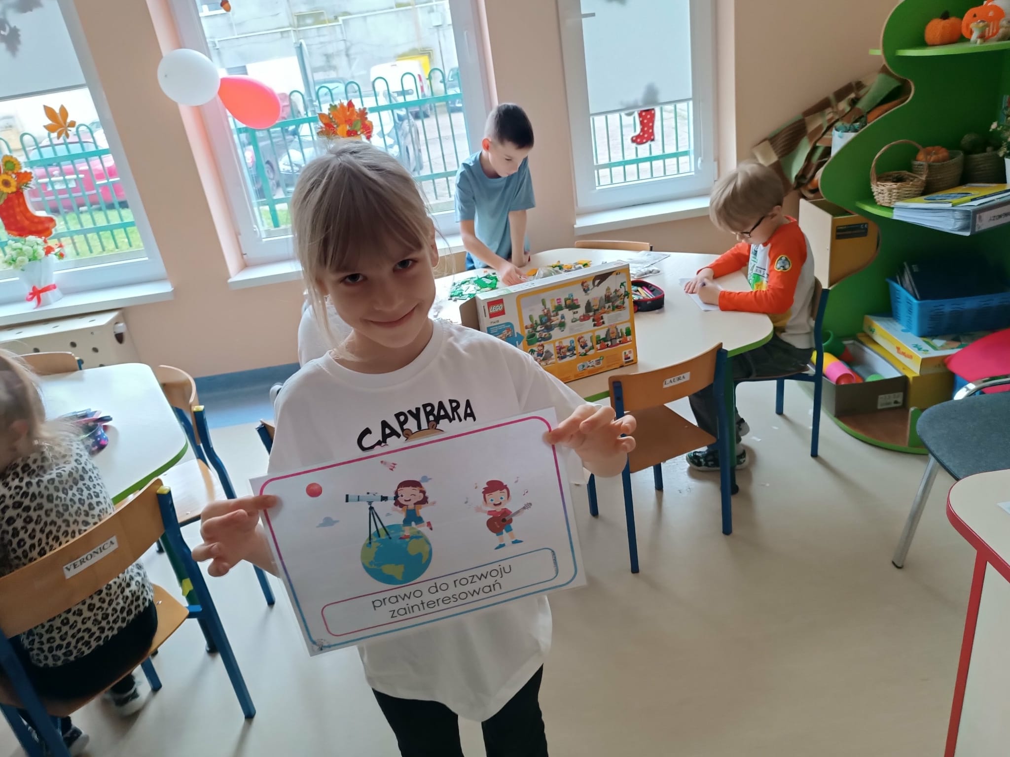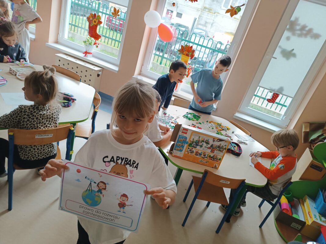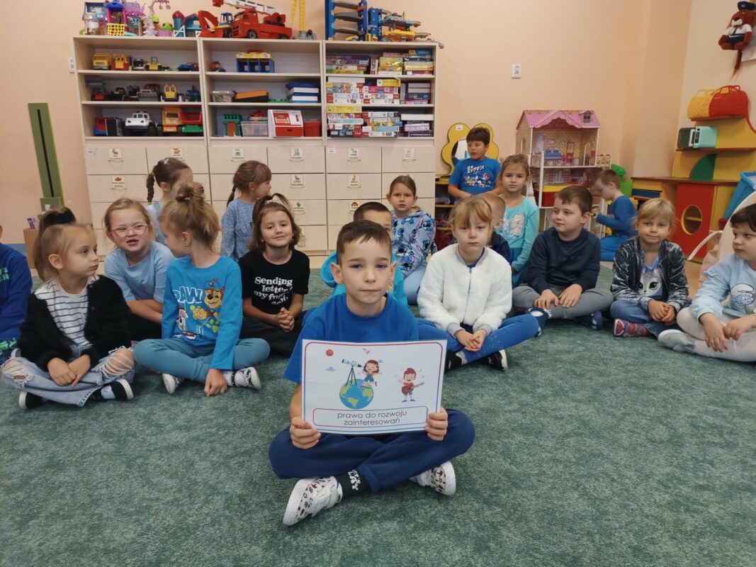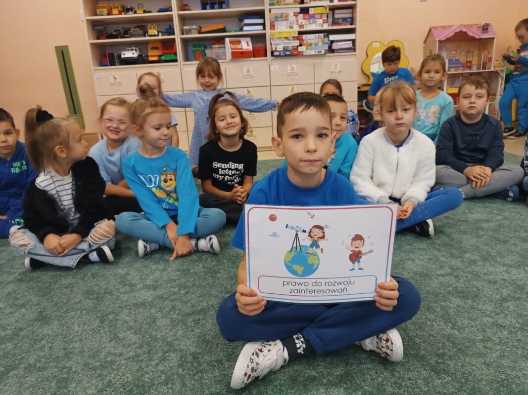 20 listopada obchodziliśmy Międzynarodowy Dzień Praw dziecka. Dzieci wzięły udział w marszu z niebieskimi balonami. Tego dnia dzieci miały okazję porozmawiać o swoich prawach. Dzieci dowiedziały się, że mają prawo między innymi do rozwoju własnych zainteresowań, mogą rozwijać swoje zainteresowania w każdy możliwy dla siebie sposób. Wybrzmiały również prawa dotyczące miłości, szacunku, odpoczynku, zdrowia, wyboru przyjaciół.