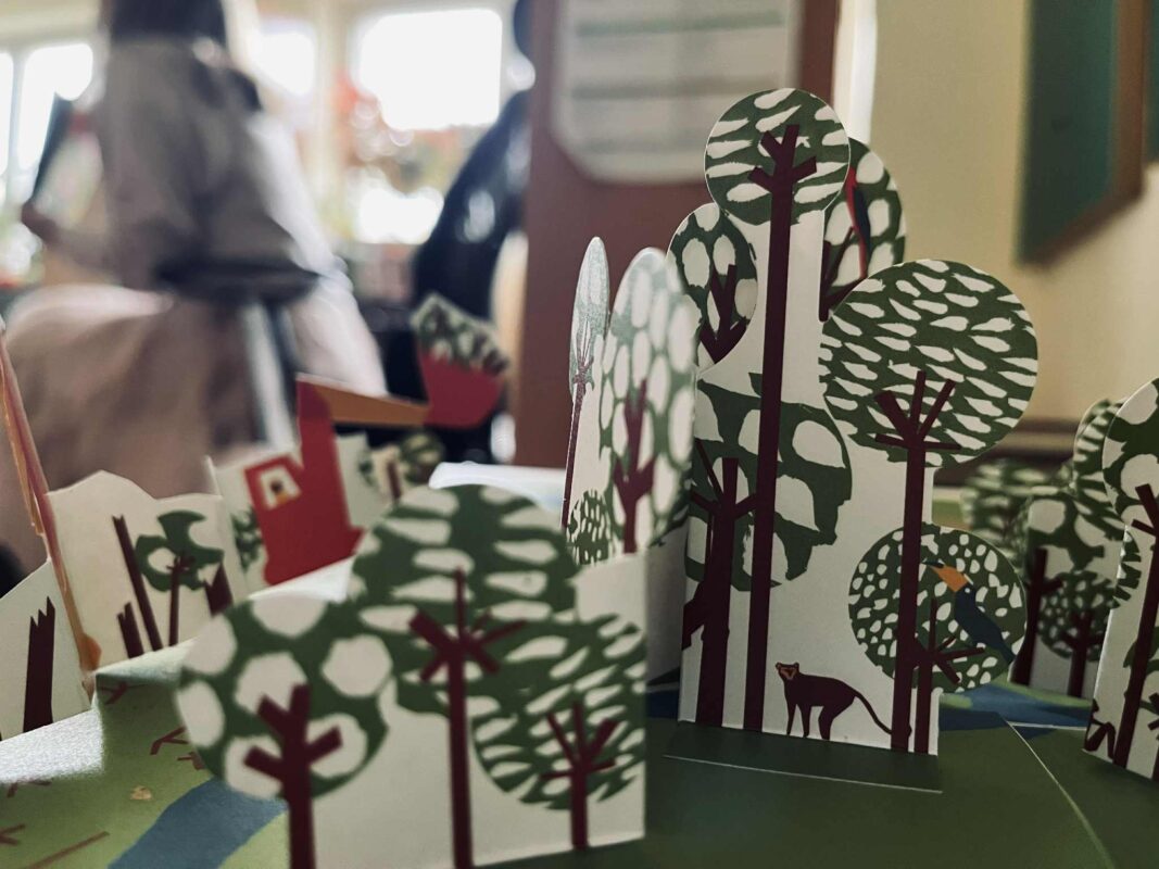 „W lesie” czekają na nas niezliczone skarby przyrody, drzewa! Szliśmy po śladzie słuchając o historii pewnego leniwca. Takiej książki jeszcze nikt z nas nie widział. Magia opowiadania oraz odkrywanie dobra jakie drzemie w każdym drzewie i w każdym promieniu słońca była dla nas wyjątkowym doświadczeniem oraz inspiracją do wspaniałych wypraw w kierunku natury i doceniania jej znaczenia dla dobra ludzi i zwierząt.
